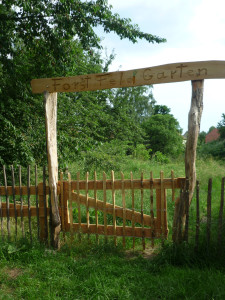 Neuer Gürtel für den ForstFeldGarten: Der neue Zaun mit zweiten schmucken Portal ist fertig. Und wer entdeckt auf dem einen Bild das Insektenhaus an der Hütte, wovon jeweils zwei in Garten zu finden sind. Wir hoffen es ziehen ein paar Exemplare zum Beobachten ein, den im Garten gibt es ein Vielzahl von natürlichen Behausungen.