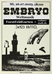 Die Musiker von MasPoSta (Carlo Mascolo, Jens Pollheide, Lothar Stahl) haben sowohl mit Christian als auch Marja Burchard bei vielen embryo-Konzerten gespielt und freuen sich deshalb sehr, dass Marja beim Konzert im ForstFeldGarten mitspielen wird.
